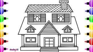 How To Draw House For Kids And Art Coloring Book With Colored Marker